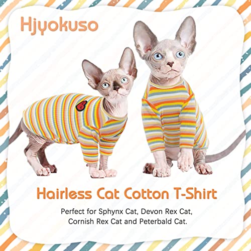 Haarlose Katze Baumwolle Kleidung Atmungsaktive Sommer T-Shirts Streifen Weste Haustier Kleidung Weich Dehnbar Hautfreundliche Katzen Bekleidung Katze Pyjama Jumpsuit für Sphynx Cornish Rex Devon Rex