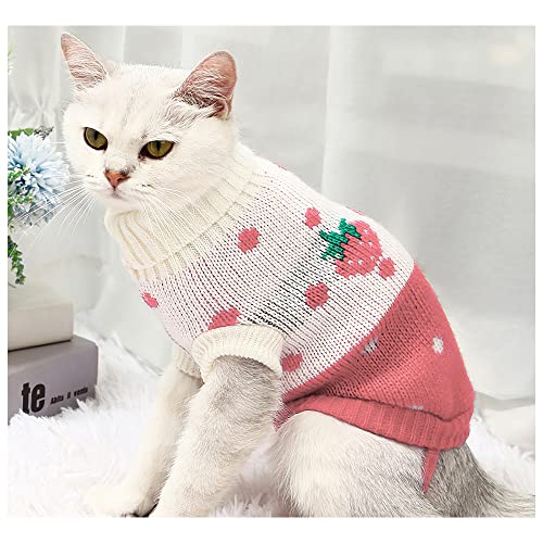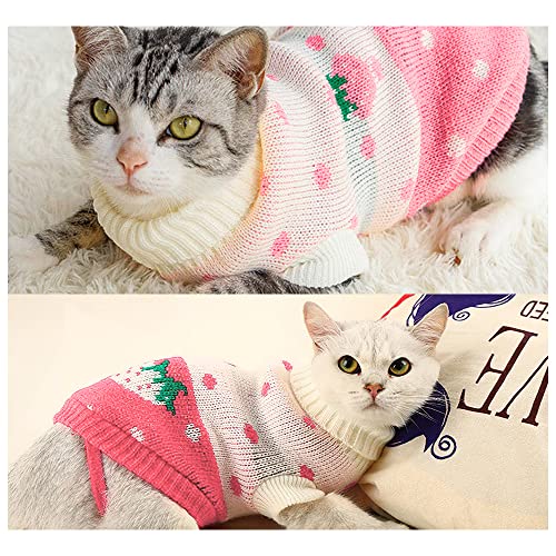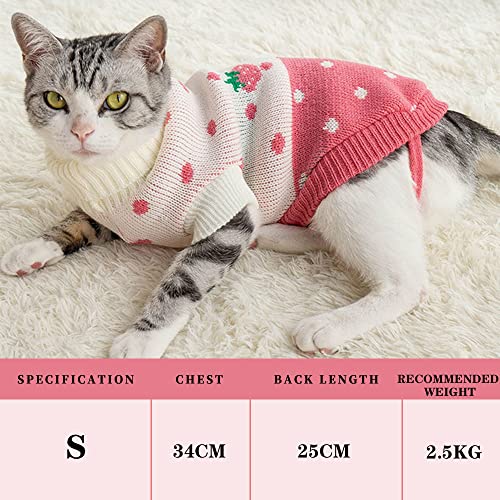 Katzen Kleidung Winter Hillylolly Haustier Pullover Katze, Pullover für Katzen Warm, Katzen Kleidung süß, Strickpullover für Katzen, Katzen Kleidung rosa, Erdbeer Pullover, Winterhaustierkleidung (S)