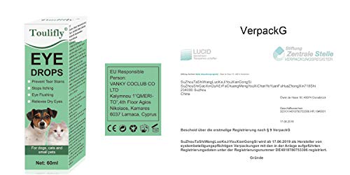 Specification: Toulifly Hund Augentropfen, Sanfte Augenpflege für Hunde, Pflegeprodukt für Augen, Besonders Milde & Schonende Reinigung mit Augentrost, Augenreiniger für Hunde & Katzen