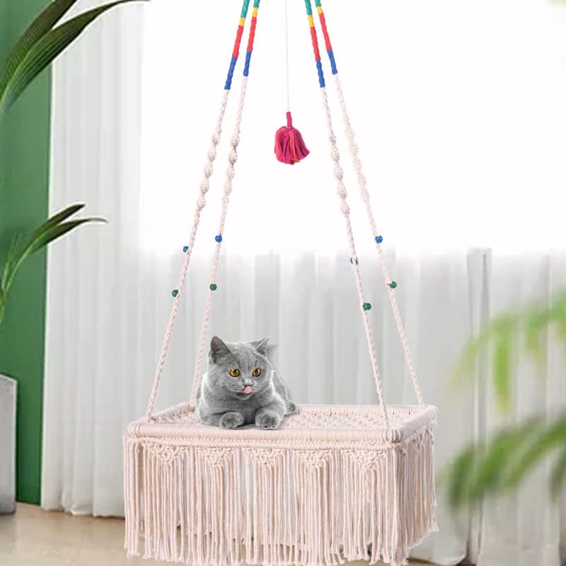 Specification: FRIENDLYSS Katzen hängende bett baumwolle pet nest katze hund hängematte faden spielzeug swing böhmischen wand hängen (Color : A, Size : One size)