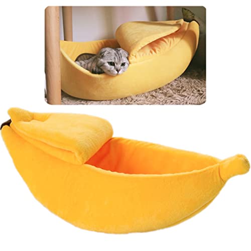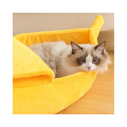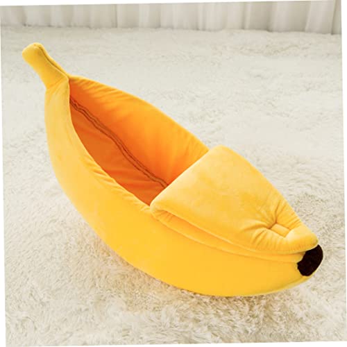 Loazyanc Süße Banana Katze Bett Haustier Bett Haus Kätzchen Bett Weich schöner Welpen Haus Katzen Kätzchen Bett, gelb 55 cm