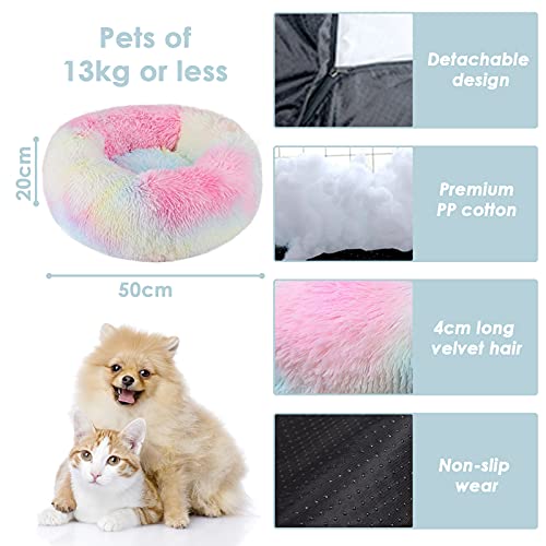 Specification: jiuzcare Katzenbett 50×50 cm Haustierbett für Kleine Hunde und Katzen Rund Donut Plüsch Kuschelbett Hundebett Katzenbett Waschbar Flauschig Hundekissen Katzenkissen, Farbig