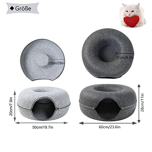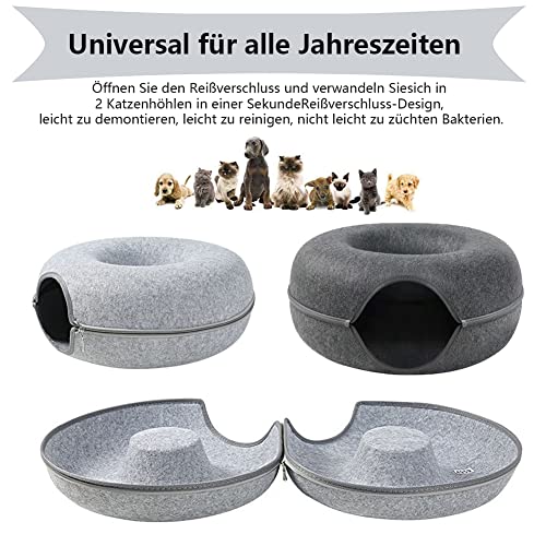 KONINKOSI katzenbett,katzennest Filz rundes Design, Donut katzenbett Harter atmungsaktiver Filz, Abnehmbares Tunnelspielzeug Kann für Katzenbetten oder Katzenspielzeug verwendet Werden