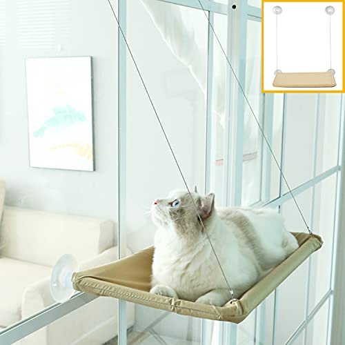 Specification: Aischens Katzen Fensterplatz Window Lounger Fenster Katzenhängematte für Katzen, Extra Stabiler Sonnenbad Katzenbett, Haustierbett für Haustier Katze klein Hund Kaninchen (55x32cm, Khaki)