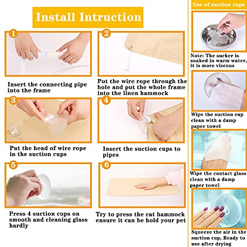 😺【Verbessern Sie Kräftige Saugnäpfe】Verwenden Sie vier kräftige Saugnäpfe am Glasfenster. Die oberen zwei Saugnäpfe sollten höher als die unteren zwei sein, um sicherzustellen, dass das Katzenhängebett nach oben gekippt ist, um zu verhindern, dass das Haustier verrutscht. Kann auf jeder glatten und luftdichten Oberfläche montiert werden, wie Fliesen, Edelstahl, Glas, Spiegel. Wenn Sie es an anderer Stelle verwenden möchten, können Sie Sekundenkleber verwenden, um es zu befestigen.