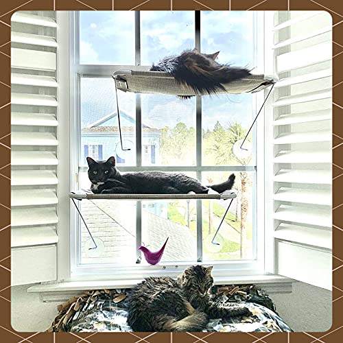 Specification: LSAIFATER Rundum 360° Sonnenbad mit unteren Stützen aus Metall, Katzen-Fenstersitz, Katzenhängematte, Fenstersitz für alle Katzen (Braun)