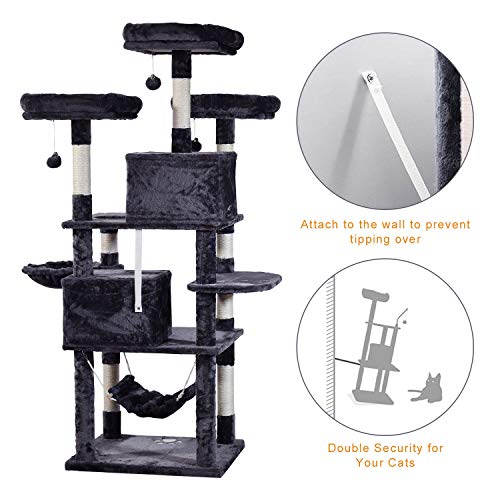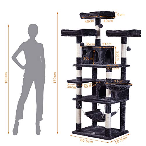 Katzenkratzbaum,Kratzbaum für Große Katzen 170 cm hoch , Katzenbaum mit Haus, viele Aussichtsplattformen, Katzenhängematte , Plüsch Liegematte
