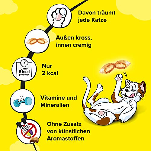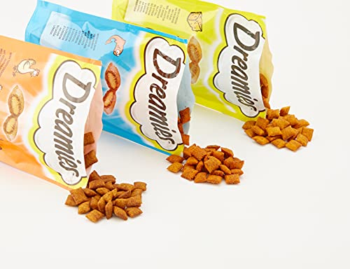 Dreamies Katzensnacks mit verschiedenen Geschmacksrichtungen – Huhn, Käse & Lachs – Außen knusprig & innen cremig – 12 x 60g