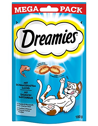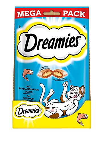 Dreamies Klassiker mit Lachs Dieses Leckerli lässt Ihre Katze auf Wolke sieben schweben: Dreamies sind kleine knusprige Taschen, die mit einer leckeren Creme