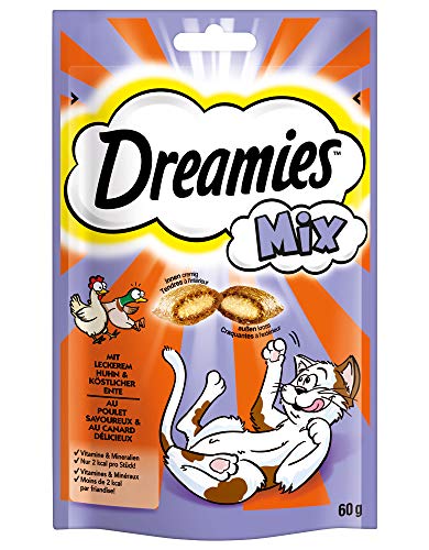 Lieferumfang: 6 x 60g Dreamies Mix in wiederverschließbarer Verpackung / Katzenfutter mit Geflügel / Nur 2kcal pro Stück / Für Freigänger & Hauskatzen / Knuspriger Snack für unsere Schützlinge