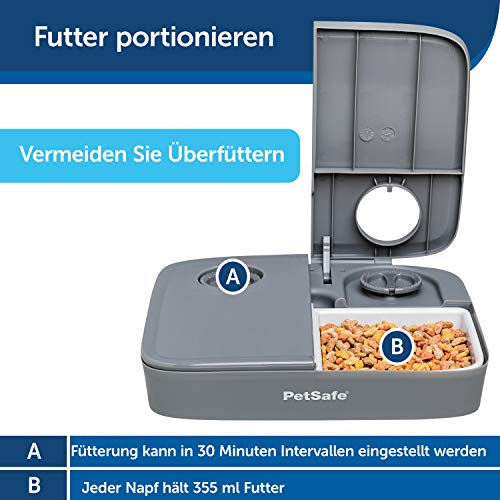 Specification: PetSafe Futterautomat für 2 Mahlzeiten, Integrierte Schaltuhren, BPA-freier Futternapf, Für Trockenfutter geeignet, Grau, 1 Stück (1er Pack)