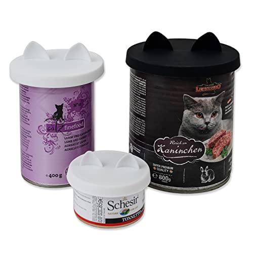 Specification: OHMO Dosendeckel Katzenfutter, Universal Silikon Deckel für Dosen für Tierfutter(70g, 85g, 200g, 400g usw.), BPA-frei, Weiß und Schwarz, 2er-Set