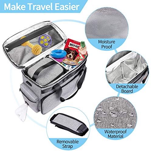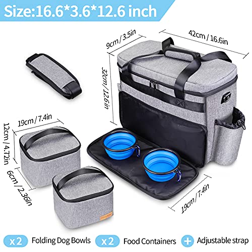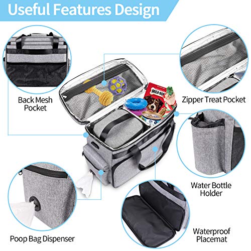 PUEIKAI Hunde Reisetasche, Haustier Tragetasche mit Multifunktions Taschen für Hundezubehör, Leckereien, Spielzeug, mit 2 Vorratsbehälter und 2 Faltbare Hundenapf, ideal für Reisen, Camping