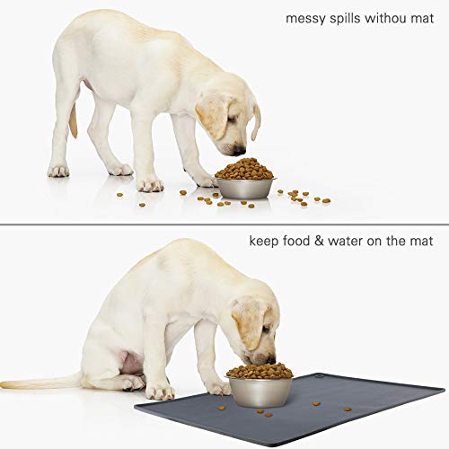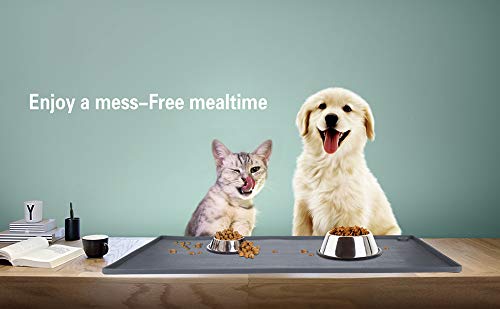 IYYI Große Hundefuttermatte, Silikon-Futtertablett für Haustiere, 60×40 cm Katzenfuttermatte, 1 cm erhöhte Kanten, rutschfest, rutschfest, wasserdicht, leicht zu reinigen (Leichter Gary)