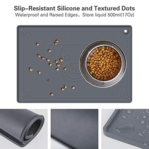 Specification: IYYI Große Hundefuttermatte, Silikon-Futtertablett für Haustiere, 60×40 cm Katzenfuttermatte, 1 cm erhöhte Kanten, rutschfest, rutschfest, wasserdicht, leicht zu reinigen (Leichter Gary)