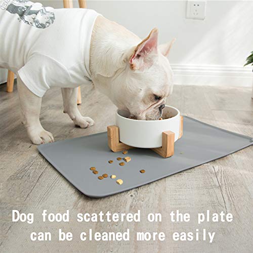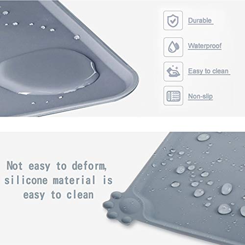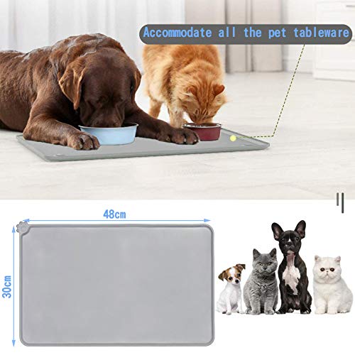 Specification: MOOING 2 Stücke Napfunterlage Hund Katzen, wasserdichte und rutschfeste Silikon Fressnapf Unterlage mit Rand für Futternäpfe Wassernapf, Futtermatte,47x30cm,Schwarz+Grau