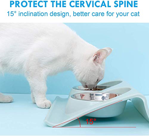 【Elegantes Design】 – 15 ° geneigte Plattform, angemessene Schalenhöhe reduzieren den Stress von Katzen im Nacken, Arthritis oder Rücken, die beste Fütterungshaltung und passt zu verschiedenen Katzen und kleinen Hunden. Das rutschfeste Design kann den Boden beim Füttern von Haustieren vor Kratzern schützen.