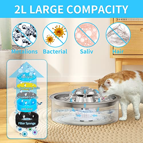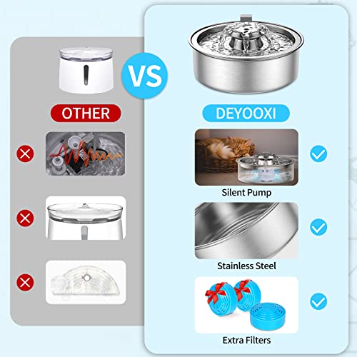 Deyooxi Katzenbrunnen,Trinkbrunnen für Katze aus Edelstahl 2 Liter Wasserspender Catit, Wasserbrunnen für Katzen Hunde mit 3 Ersatzfilter Automatisch,Leise