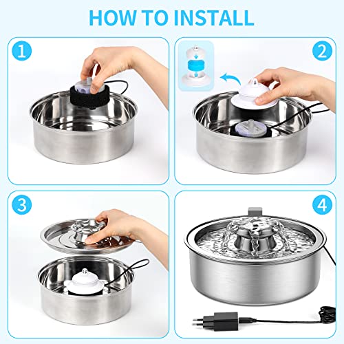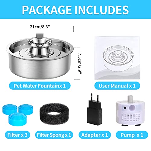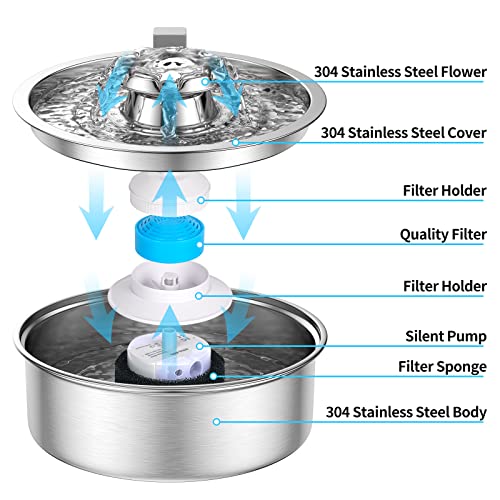 Specification: Deyooxi Katzenbrunnen,Trinkbrunnen für Katze aus Edelstahl 2 Liter Wasserspender Catit, Wasserbrunnen für Katzen Hunde mit 3 Ersatzfilter Automatisch,Leise