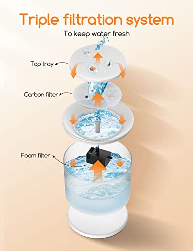 💧【Separate Basis】Durch die getrennte Ausführung von Wasser und Strom muss das Stromkabel nicht so lange in Wasser getaucht werden wie bei anderen Katzenbrunnen.Dadurch wird das Risiko eines elektrischen Lecks vermieden.