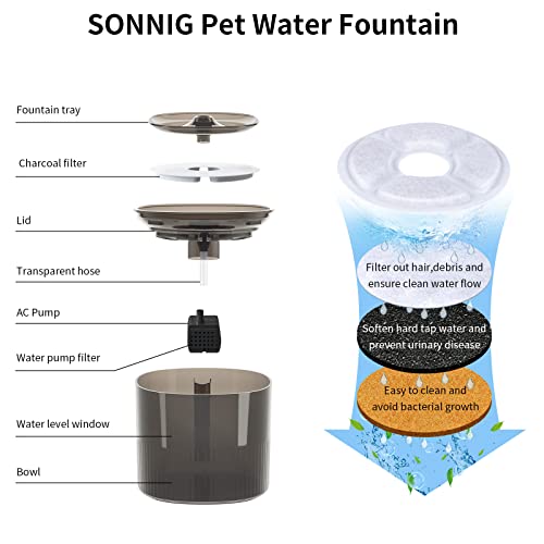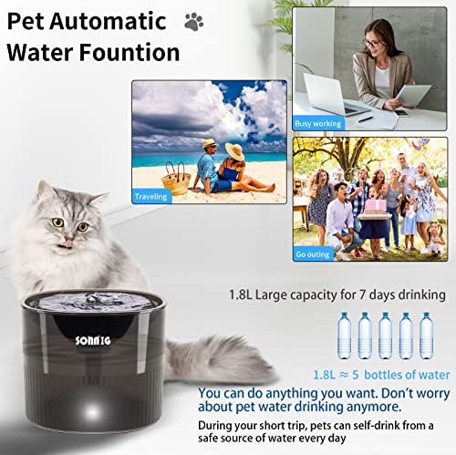 Specification: SONNIG Trinkbrunnen für Katze, Durchscheinender Wasserspender Katzen mit Wasserstandsfenster & LED-Licht, 1.8L Trinkbrunnen für Hunde, ultraleise Pumpe mit 1.5 m USB Ladekabel &Trinkbrunnen Stecker