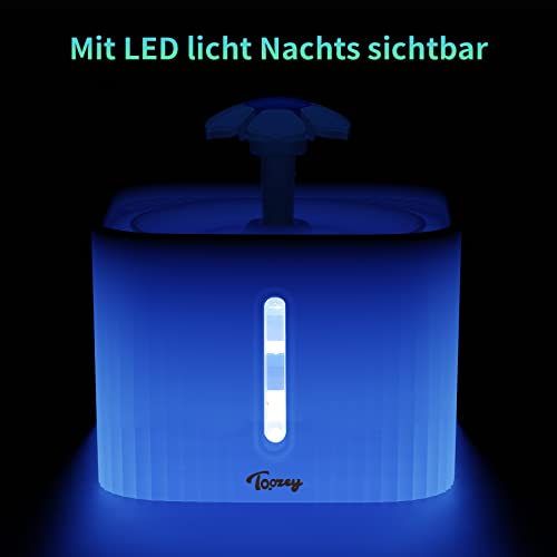 Toozey Trinkbrunnen für Katze, Katzenbrunnen für Katzen mit LED-Licht Ultraleise, Wasserbrunnen 2,5 Liter Sichtbarer Wasserstand, mit Filter und 2 Reinigungsbürsten, geeignet für Katzen und Hunde
