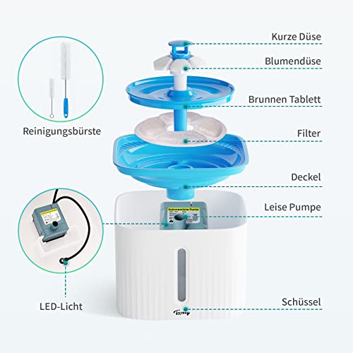 Specification: Toozey Trinkbrunnen für Katze, Katzenbrunnen für Katzen mit LED-Licht Ultraleise, Wasserbrunnen 2,5 Liter Sichtbarer Wasserstand, mit Filter und 2 Reinigungsbürsten, geeignet für Katzen und Hunde