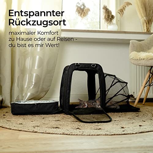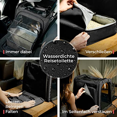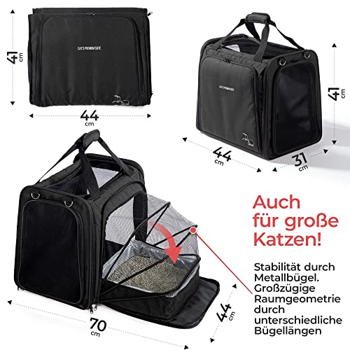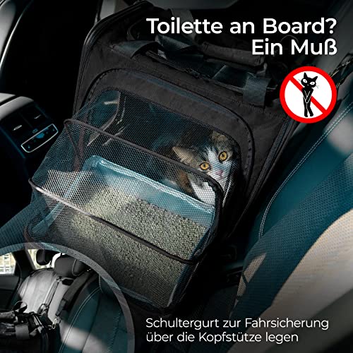 YOU DECIDE MUNICH Katzen-Transportbox [mit Katzenklo] Katzen-Transport-Tasche Katzen Tasche auch große Katzen, Tragetasche mit Katzentoilette, Katzen-Box Autoreise faltbar CAT´S Premium Suite schwarz