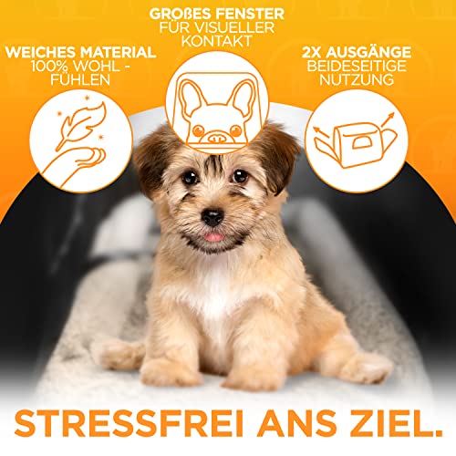 🟠 𝗕𝗘𝗤𝗨𝗘𝗠𝗘𝗥 𝗥Ü𝗖𝗞𝗭𝗨𝗚𝗦𝗢𝗥𝗧 – das extra flauschige Innenbett der Tragetasche schafft einen gemütlichen Aufenthaltsort. Die Hundetasche kann auf einer Seite geöffnet und somit zum vertrauten Hundekennel in einer ungewohnten Umgebung werden.