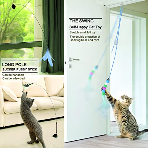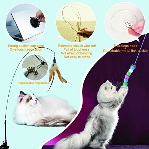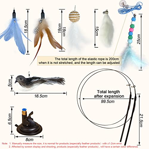😻【Viele Spielzeuge】: Lieferumfang 9 Katzenspielzeuge und Zubehör. Einschließlich 1 Saugnapf mit starker Saugkraft, 2 Katzenstäbe mit einer Länge von 70 cm, 1 Federspielzeug zum Aufhängen, das am Türrahmen und in anderen Höhen aufgehängt werden kann, 4 verschiedene Arten von Federspielzeug und 1 realistischer Vogel.