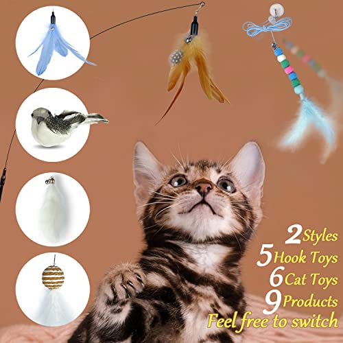 9 Stück Katzen Spielzeug, Interaktives Katzenspielzeug mit Glocken,Interaktives Katzenspielzeug Federn,Katzenangel mit Federn und Glöckchen,Katzen Glocken Zauberstab Vogel lebensecht+Starkem Saugnapf