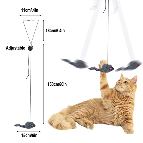 【Verstellbare und Einziehbare Hängende Katzen-Maus-Spielzeug】Verstellbare und einziehbare hängende Tür kleine Maus neckt Katzenspielzeug, befreit die Natur von Katzen und macht sie schlauer