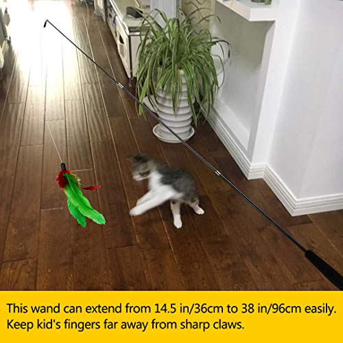 Specification: Interaktives Katzenspielzeug Spielzeug mit Federn, Teaser mit 2 Skalierbar Stangen 10 Katzenangel Ersatzfedern mit Anhänger Feder Glocke Befestigungen, Katzenspielzeug Set für Kätzchen und Katzen