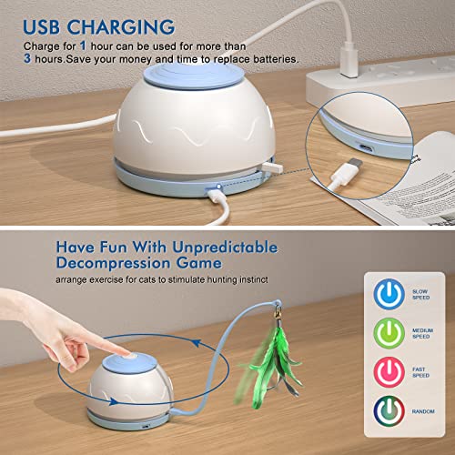 🐈 Automatisches Herunterfahren und verschiedene Geschwindigkeitsmodi-3 benutzerdefinierte Modi, geeignet für Katzen jeden Alters!Die eingebaute automatische 10-Minuten-Abschaltfunktion hilft, die Batterielebensdauer zu verlängern, wenn das Kätzchen ein Nickerchen macht! Große Batteriekapazität, 3-Stunden lang anhaltende Batterielebensdauer bei voller Aufladung, lassen Sie Ihre Katze den Spaß genießen. Mach weiter und lass mich die Katze begleiten! ! !