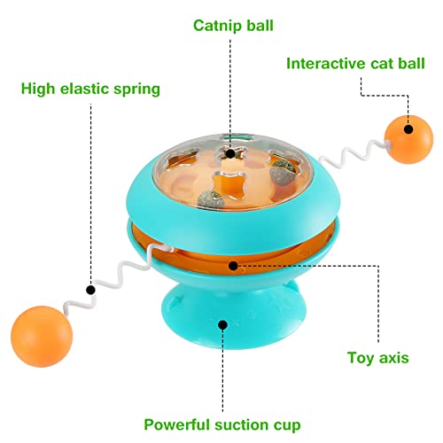 KEESIN Interaktives Katzenspielzeug Katzenspielzeug mit Saugnapf, Wandhalterung, Katzenspinner mit drehbarem Spielzeugball für Kätzchen(Blau)