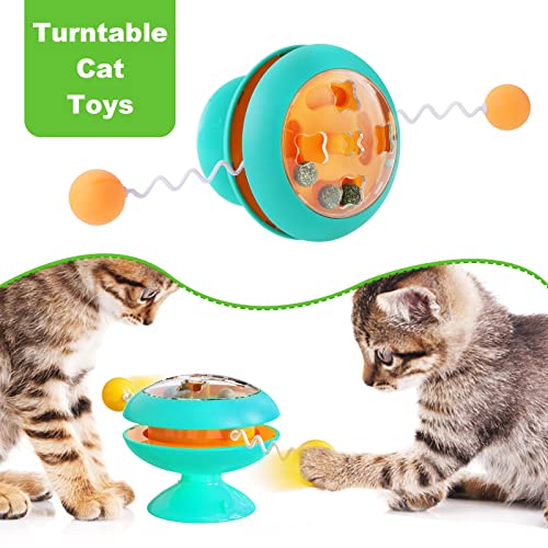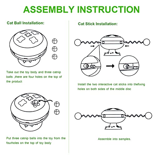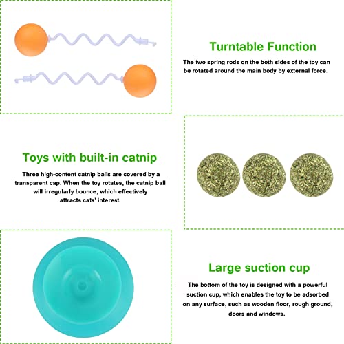 [Interesse der Katze wecken]: Das kreiselförmige Katzenspielzeug wird durch einen Saugnapf befestigt. Enthält 3 Katzenminze-Kugeln mit hohem Gehalt. Die transparente Abdeckung mit Löchern auf der Oberseite kann katzenanziehende Gerüche abgeben. Das Spielzeug kann unter äußerer Kraft gedreht werden, der Katzenstock besteht aus Federn. Die verschiedenen Designs geben Katzen mehr Spaß beim Spielen.