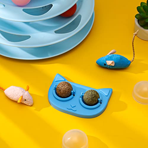 【Drehbar und Klebbar】 Die Rückseite von Katzenminze Spielzeug ist mit doppelseitigem Klebeband gestaltet, das sich bequem an der Wand oder einer anderen glatten Oberfläche anbringen lässt und Platz spart. Es hat auch ein um 360° drehbares Design, sodass Katzen gleichmäßig lecken und spielen können.