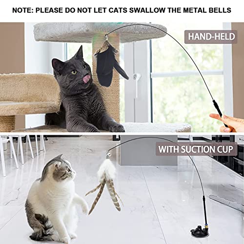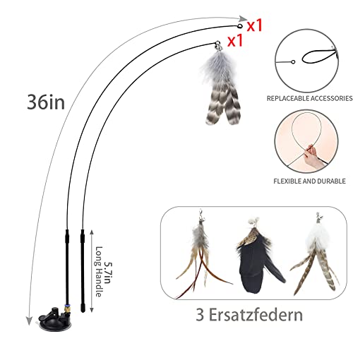 Sunshine smile Interaktives Katzenspielzeug Federn, Interaktives Katzenspielzeug Angel Mit Feder,Interaktives Katzenspielzeug Mit Saugnapf,Katze Zauberstab Spielzeugdraht, Katzen Spielzeug